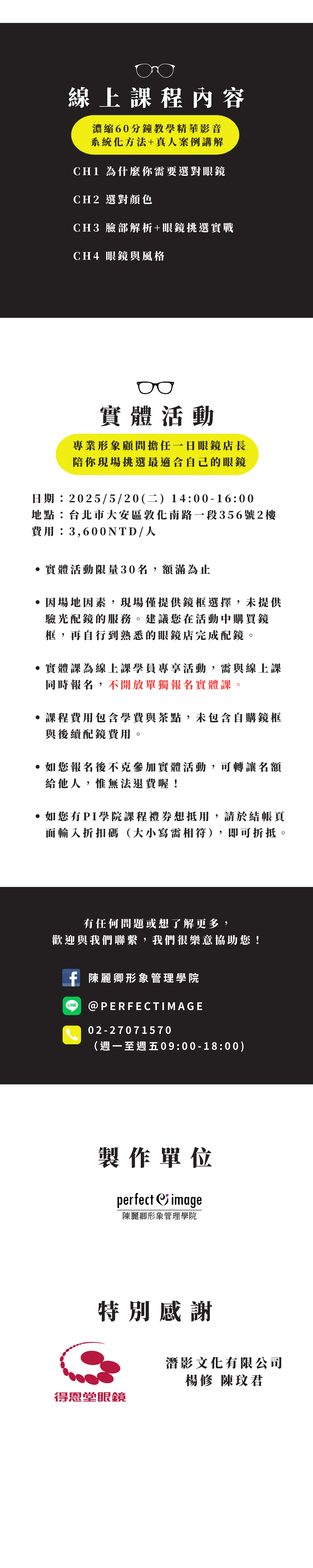 您可以透過我們的line@帳號(ID: @perfectimage)、FB粉專私訊,或是來信至service@perfectimage.com.tw,我們會轉達給老師喔!
